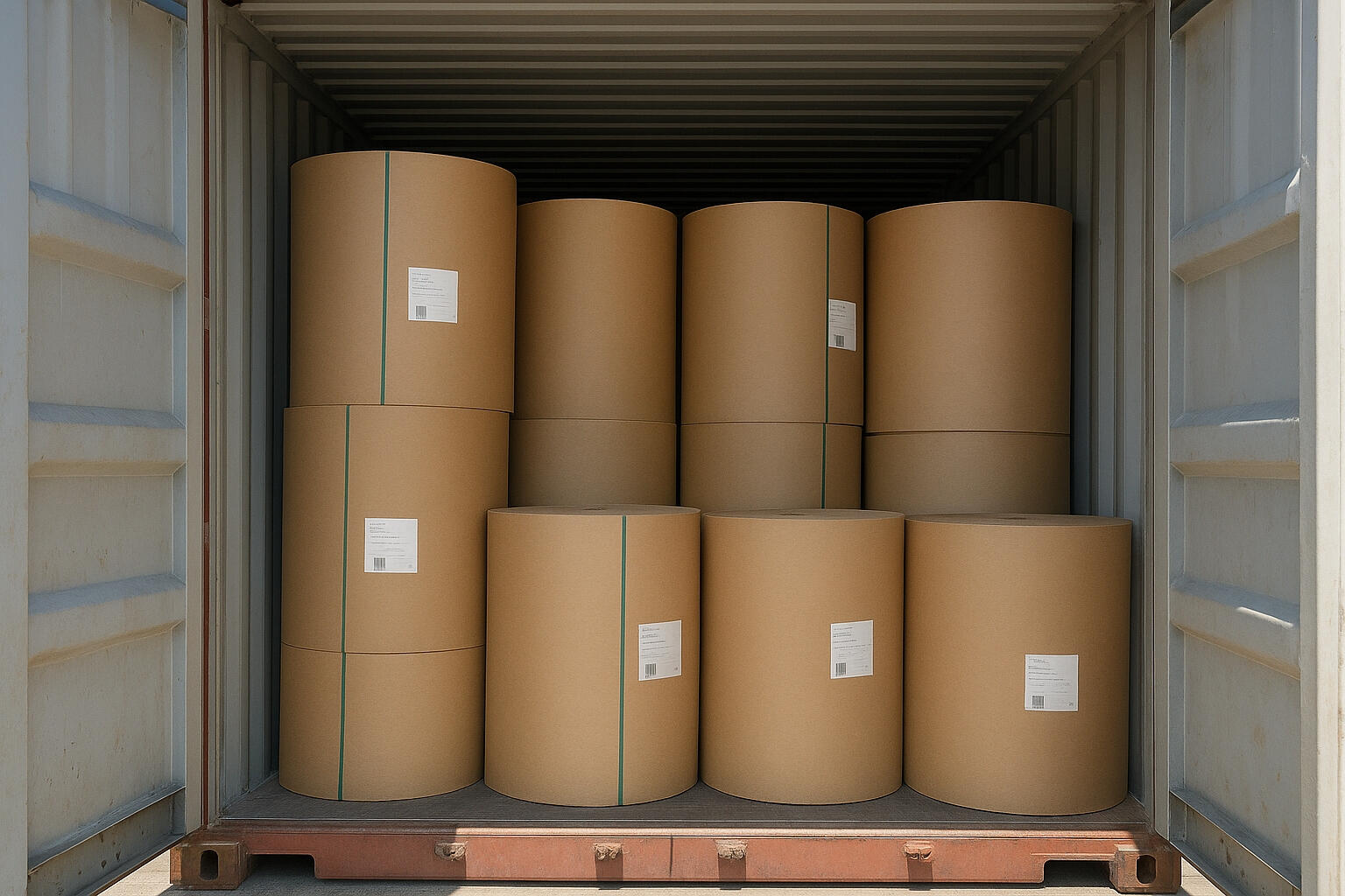 We prepare shipments for 40ft containers. Rolls are secured using straps, chocks, and pallets (if required)
